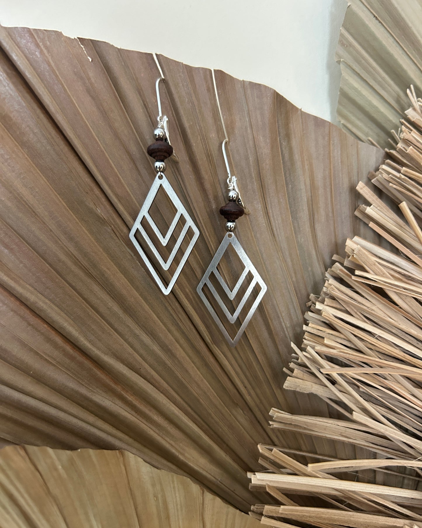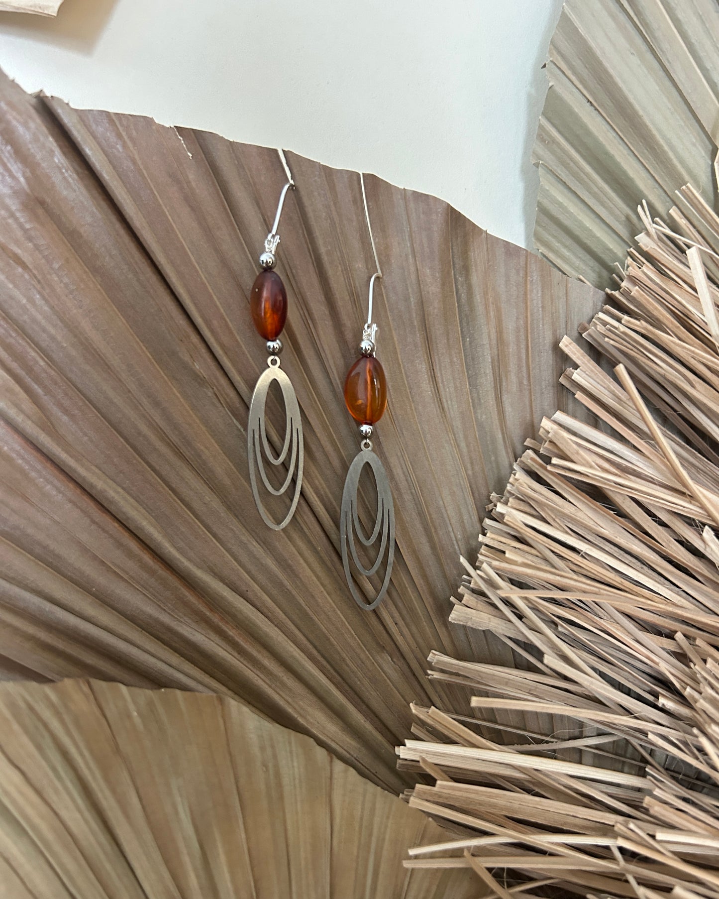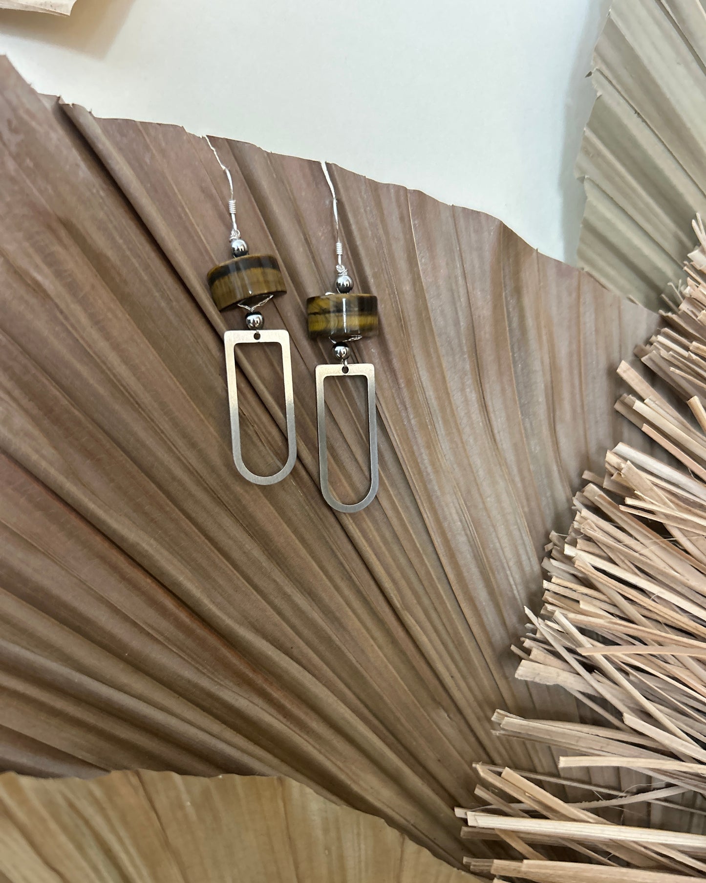Für unsere Ohrringe verwenden wir hochwertige Materialien: die Haken bestehen aus echtem 925 Sterling Silber, während die Anhänger aus Edelstahl gefertigt sind – beides nickelfrei, allergikerfreundlich und widerstandsfähig.