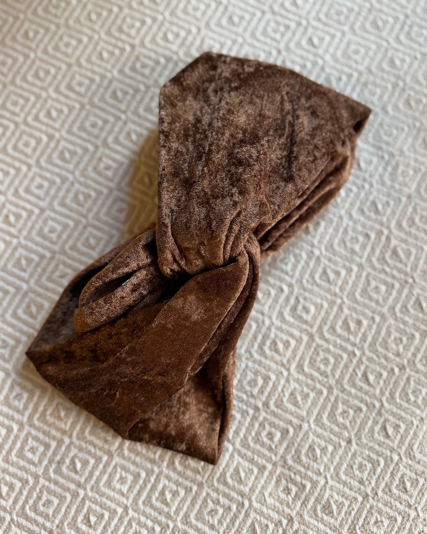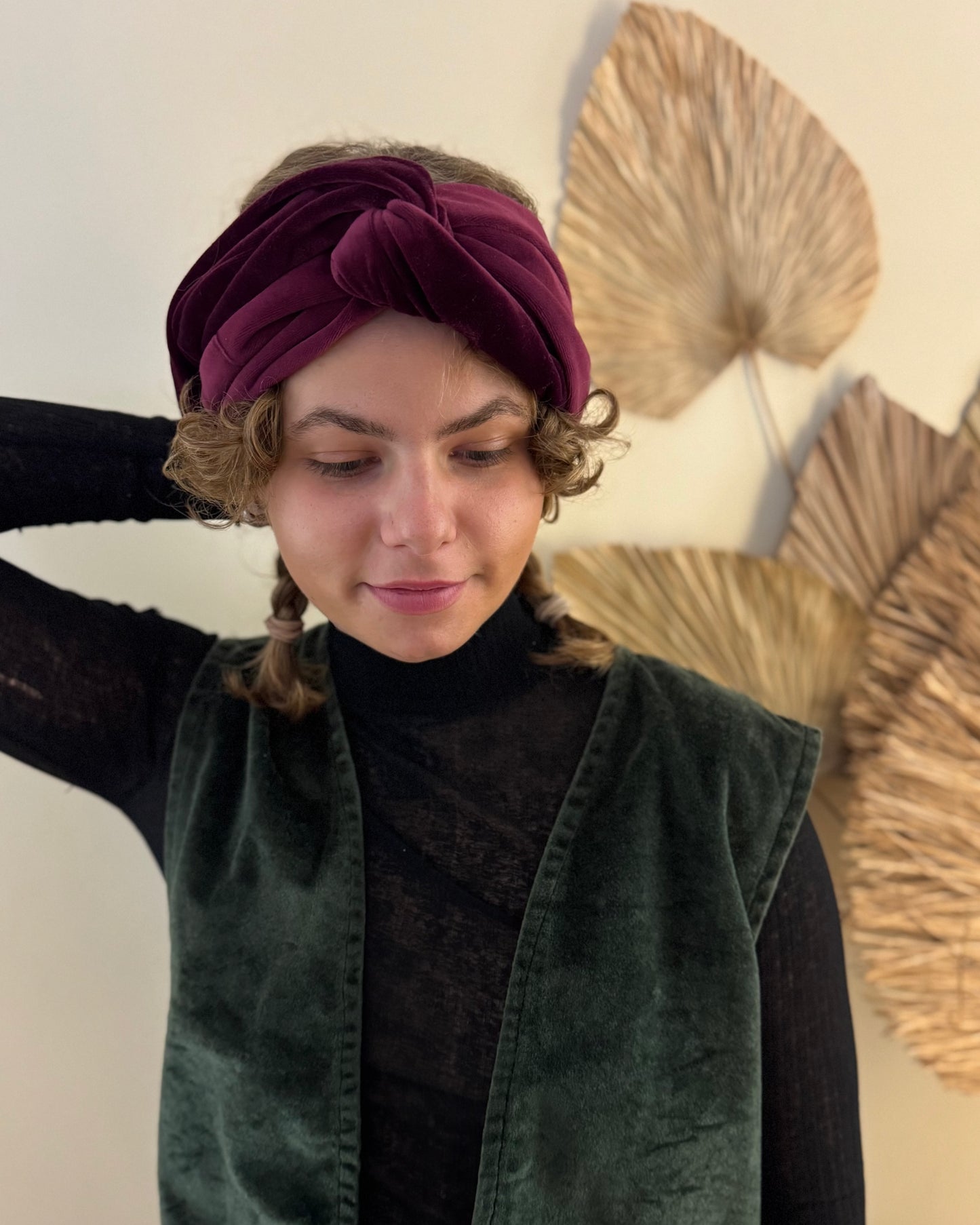Du kannst die Tuchbänder einfach überziehen. Durch den Gummi-Zug im Nacken hält das Band gut auf deinem Kopf. Durch das dickere Material, sitzen die Samt Tuchbänder voluminös am Kopf.