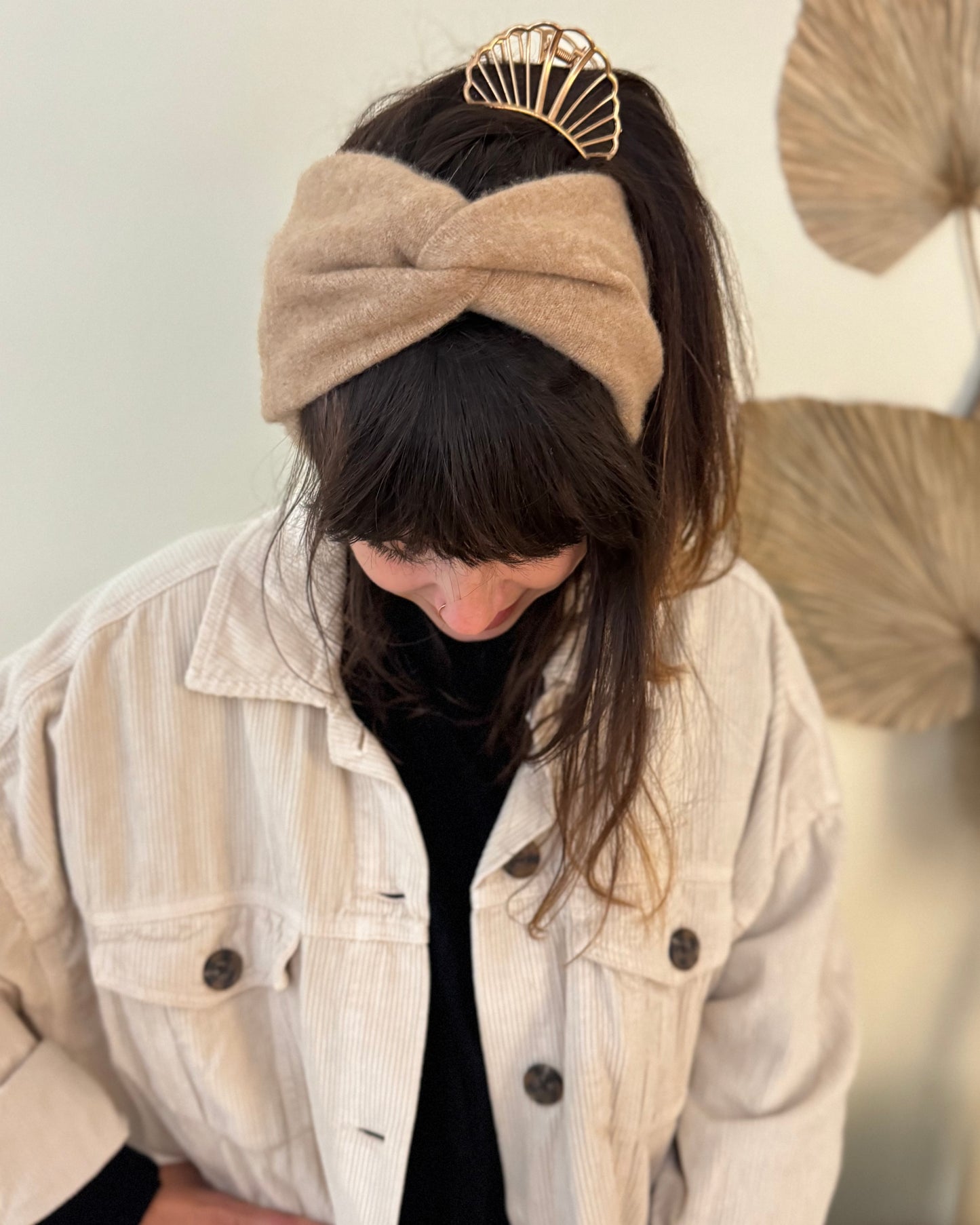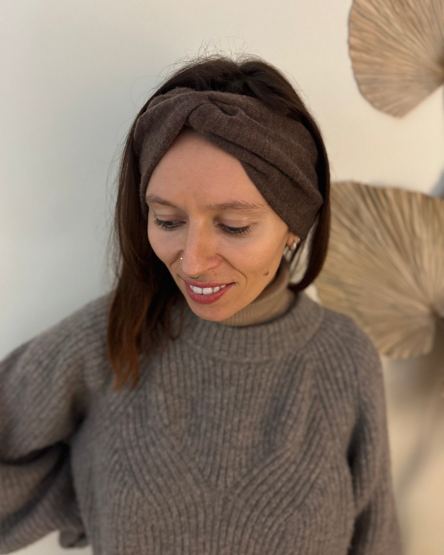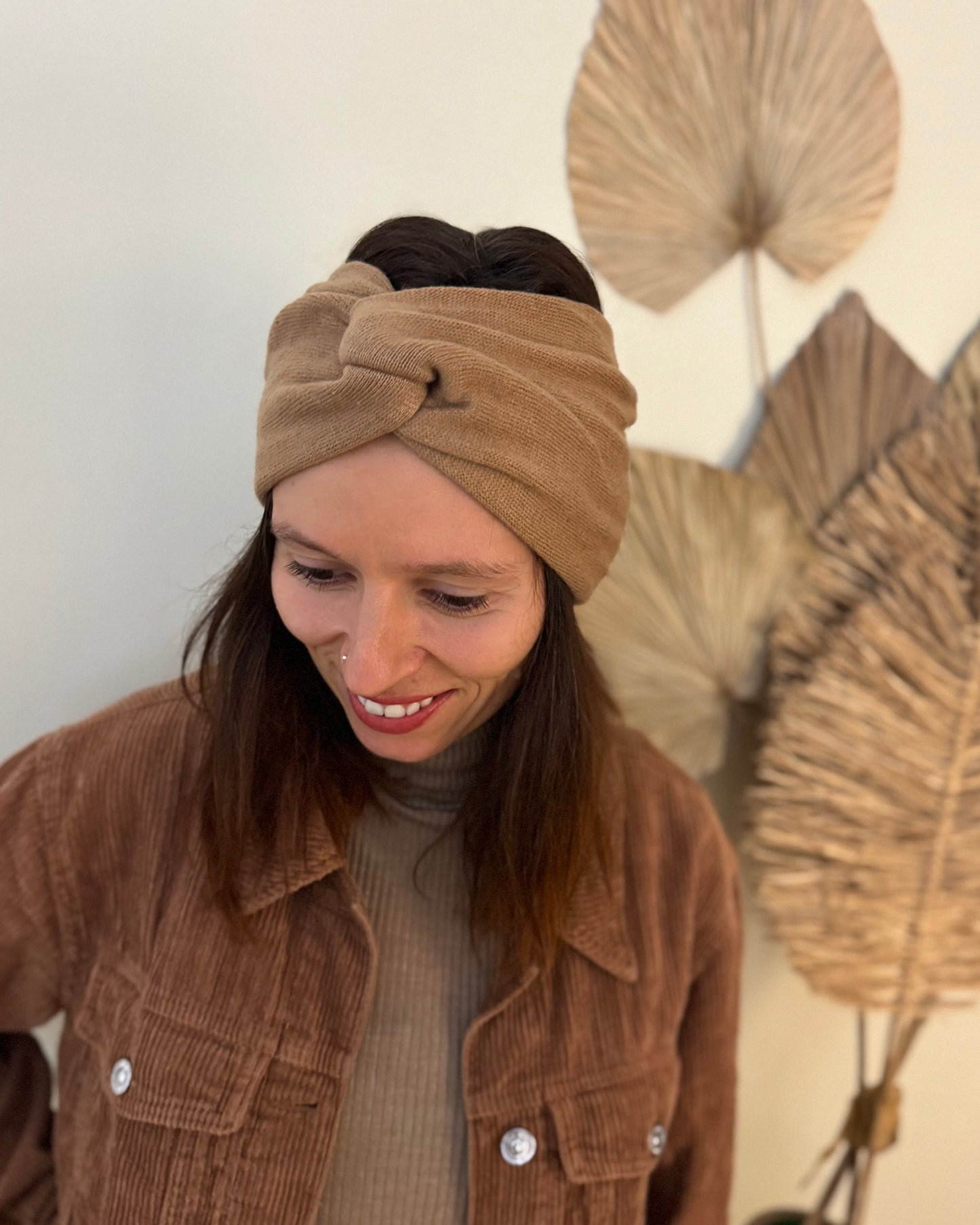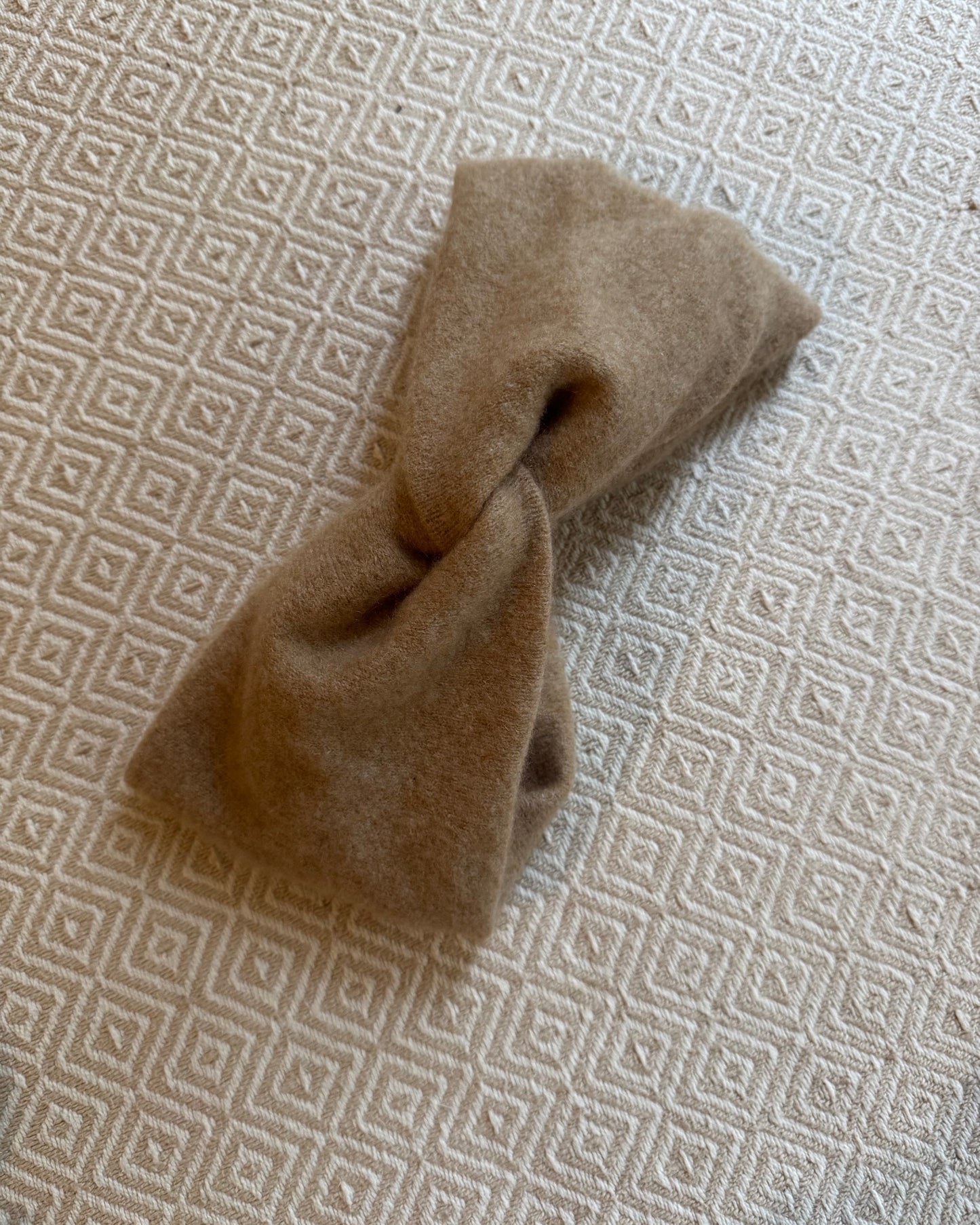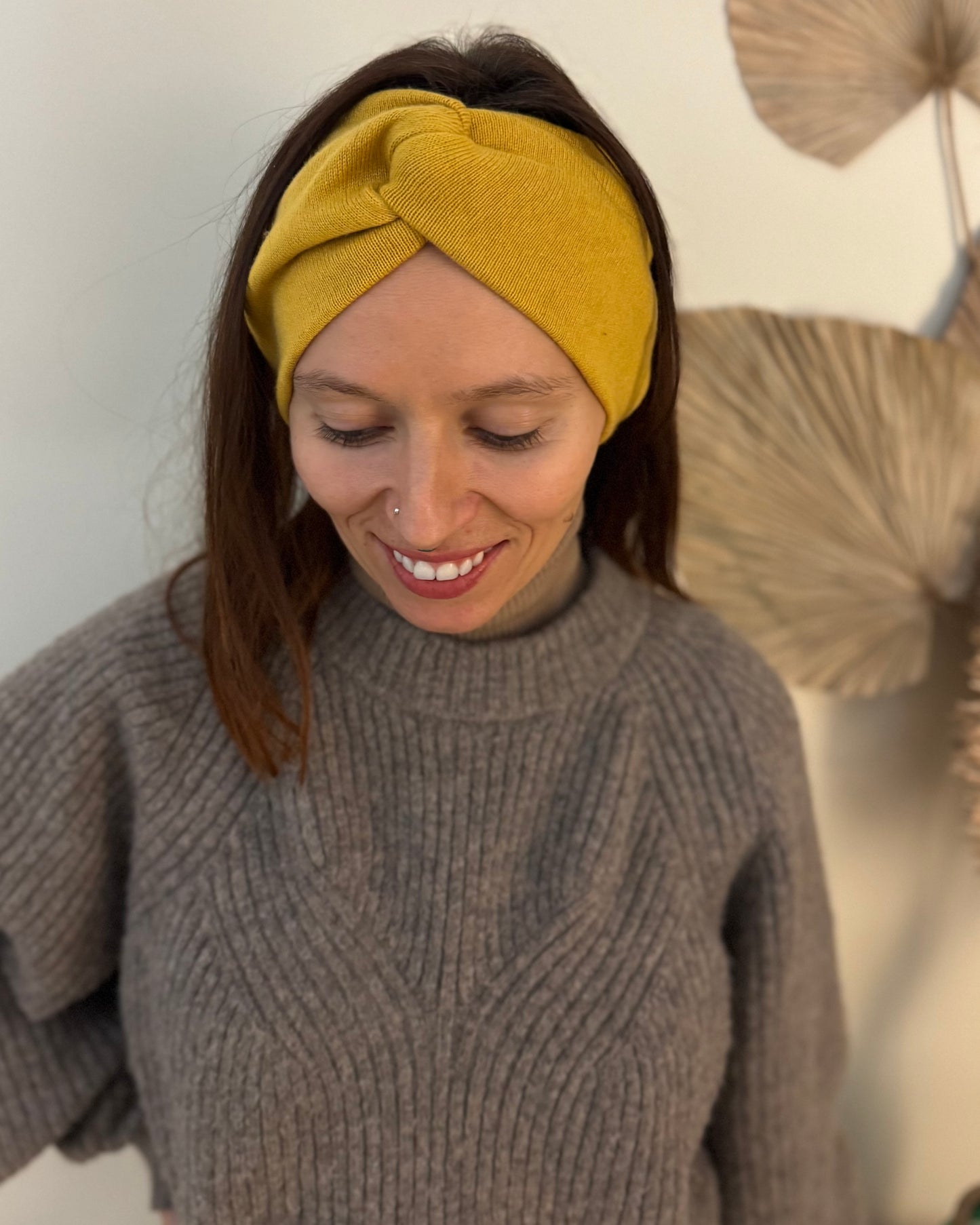 Die meisten Stirnbänder können wir aus ehemaligen Pullover-Ärmeln oder Secondhand Schals schneidern.