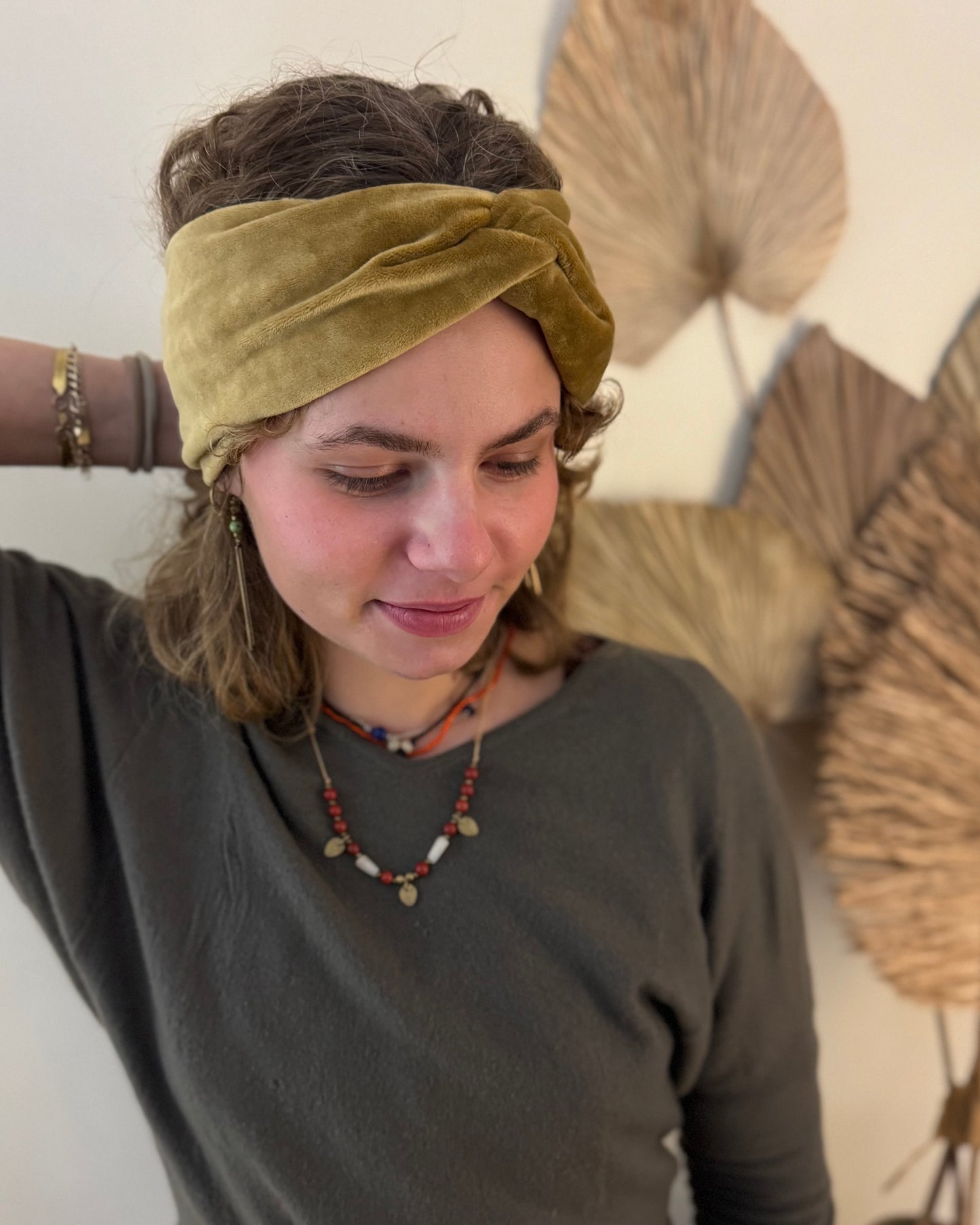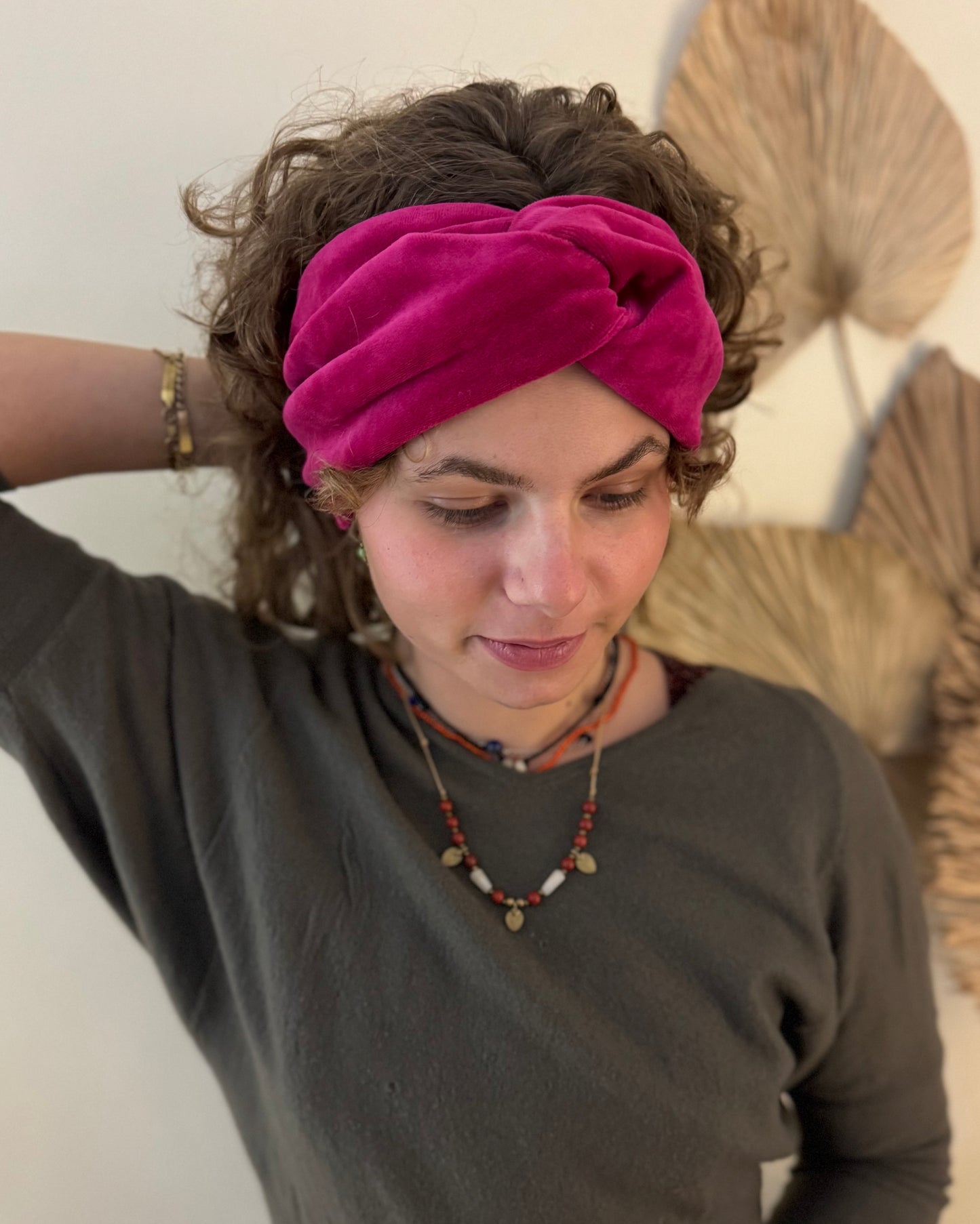 Am Kopf anliegende Stirnbänder aus tollen Samtstoffen.