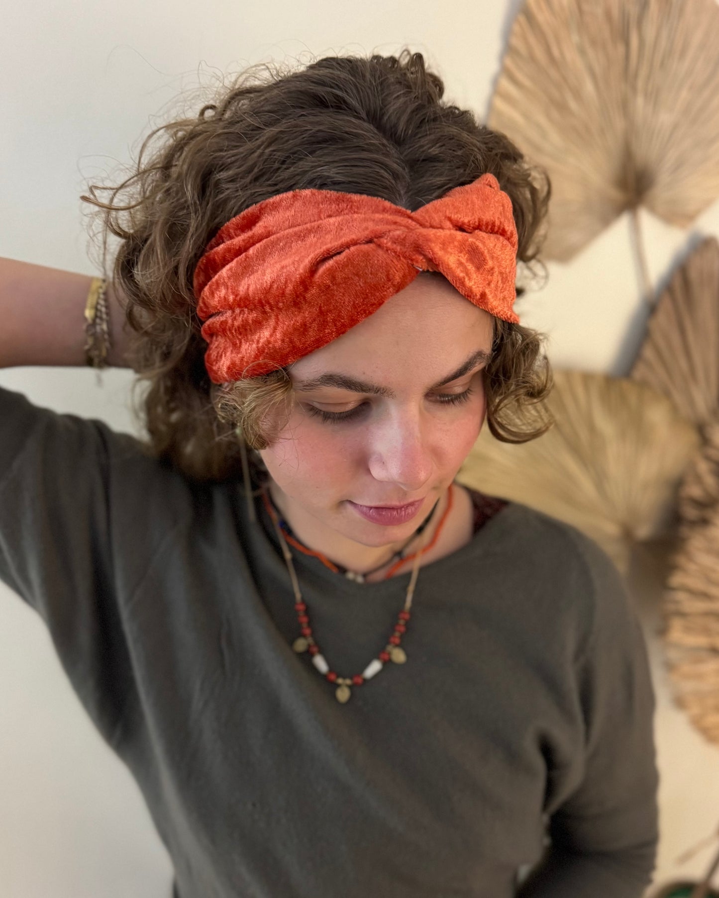 In ihrem vorherigen Leben waren die Samt-Stirnbänder pompöse Vorhänge, elegante Abendroben oder samtige Shirts.