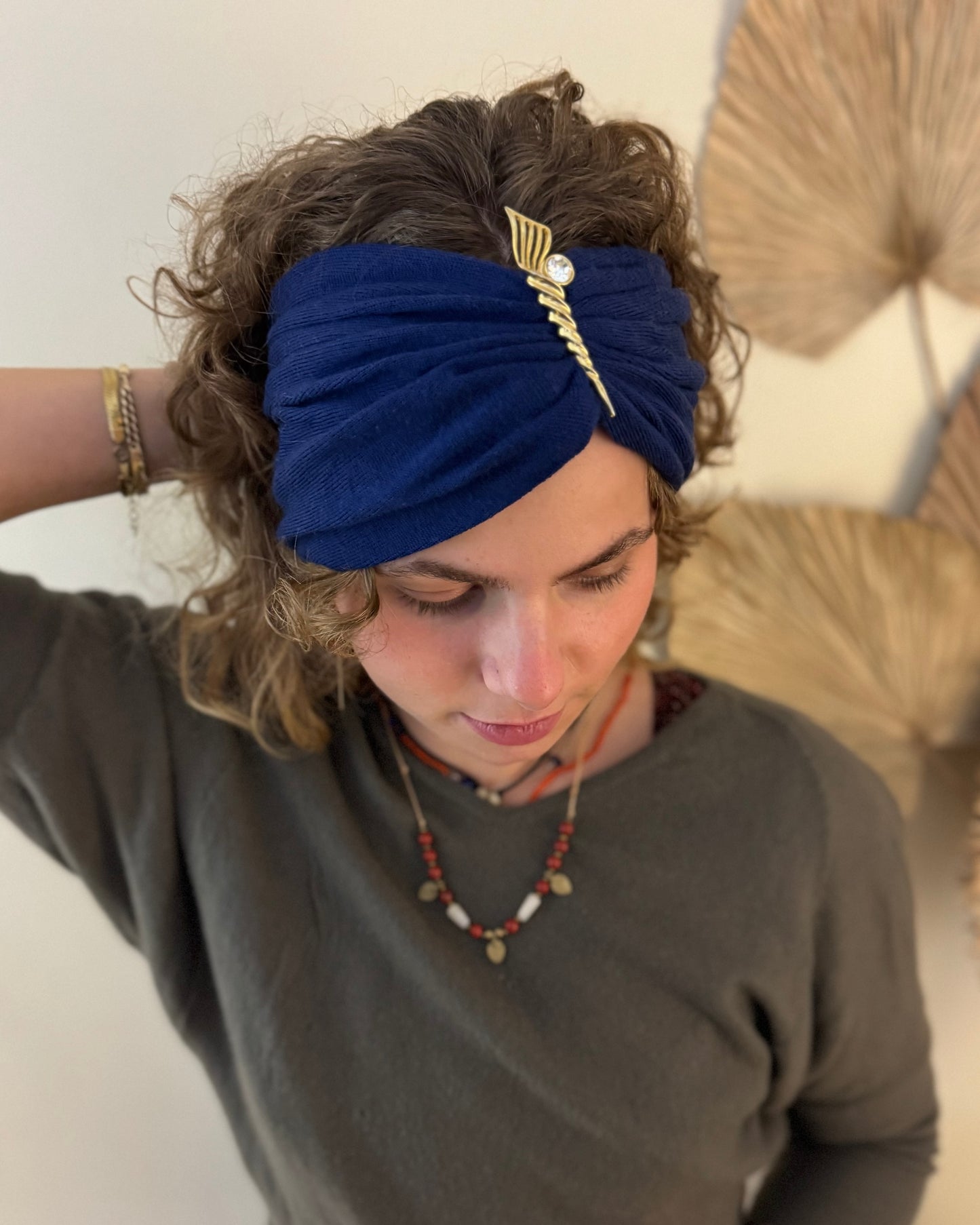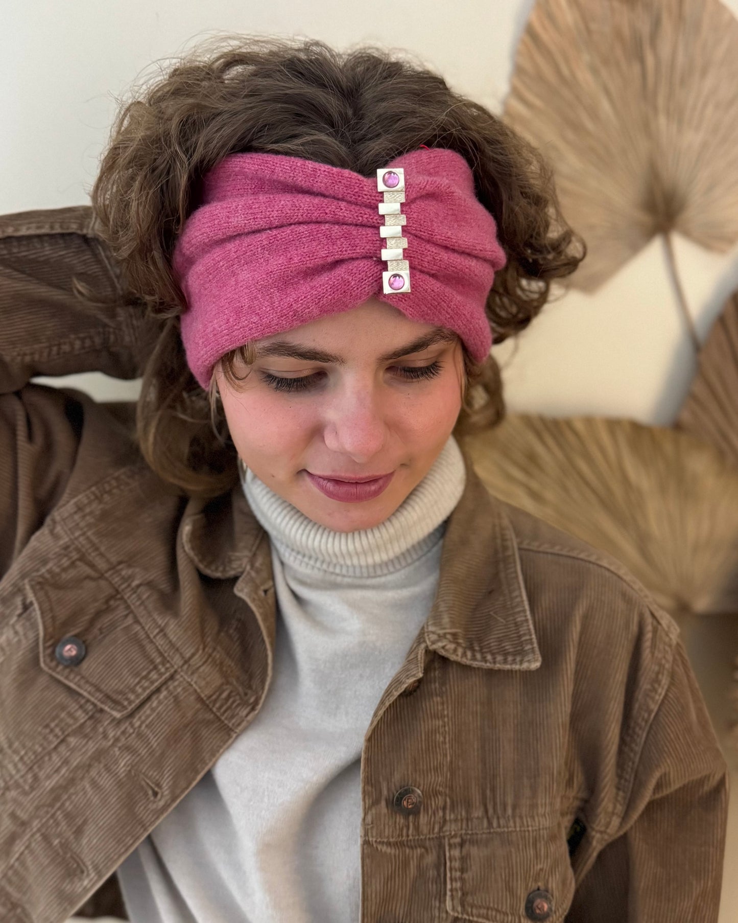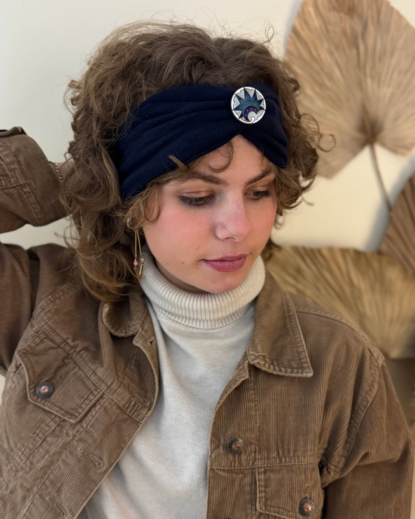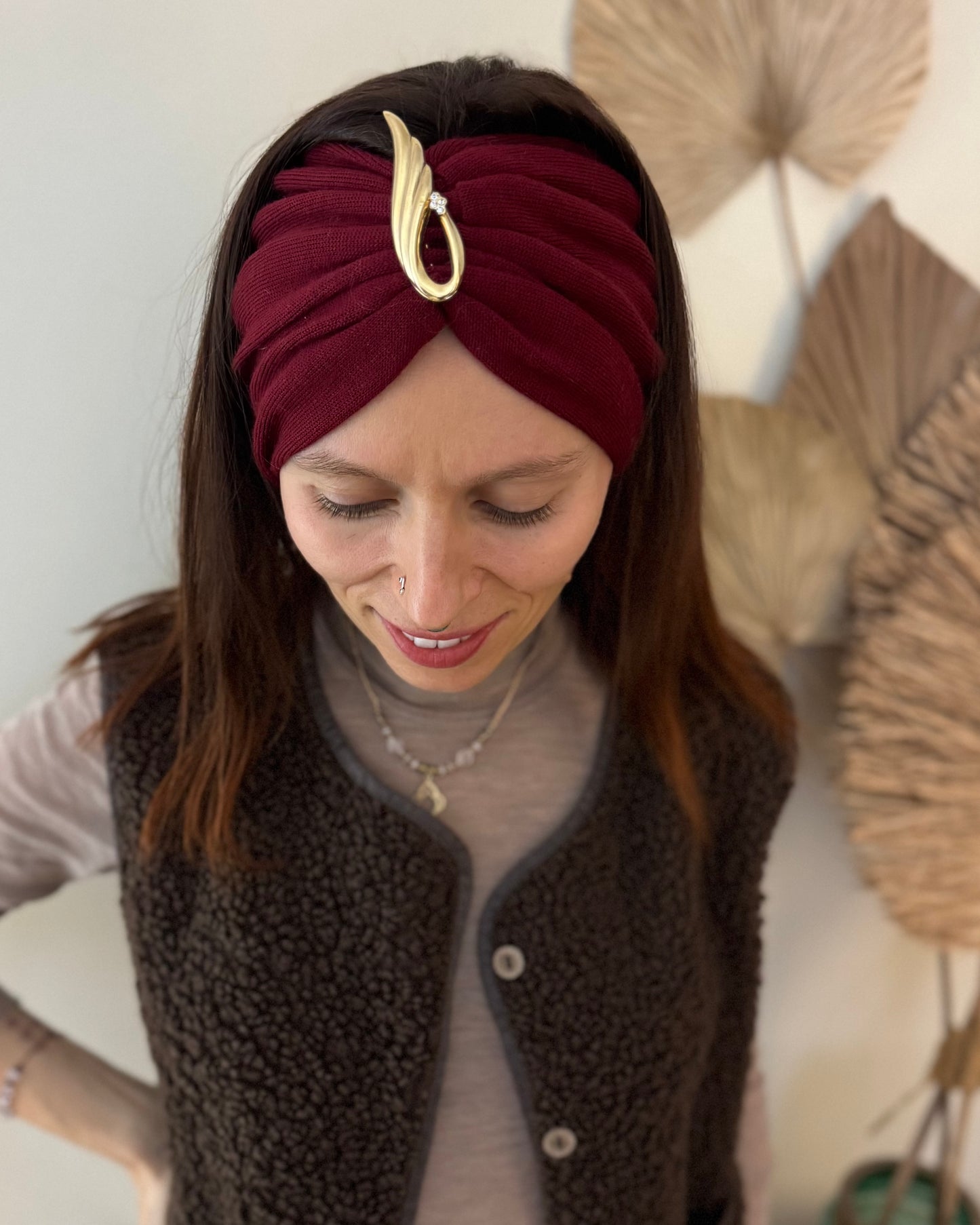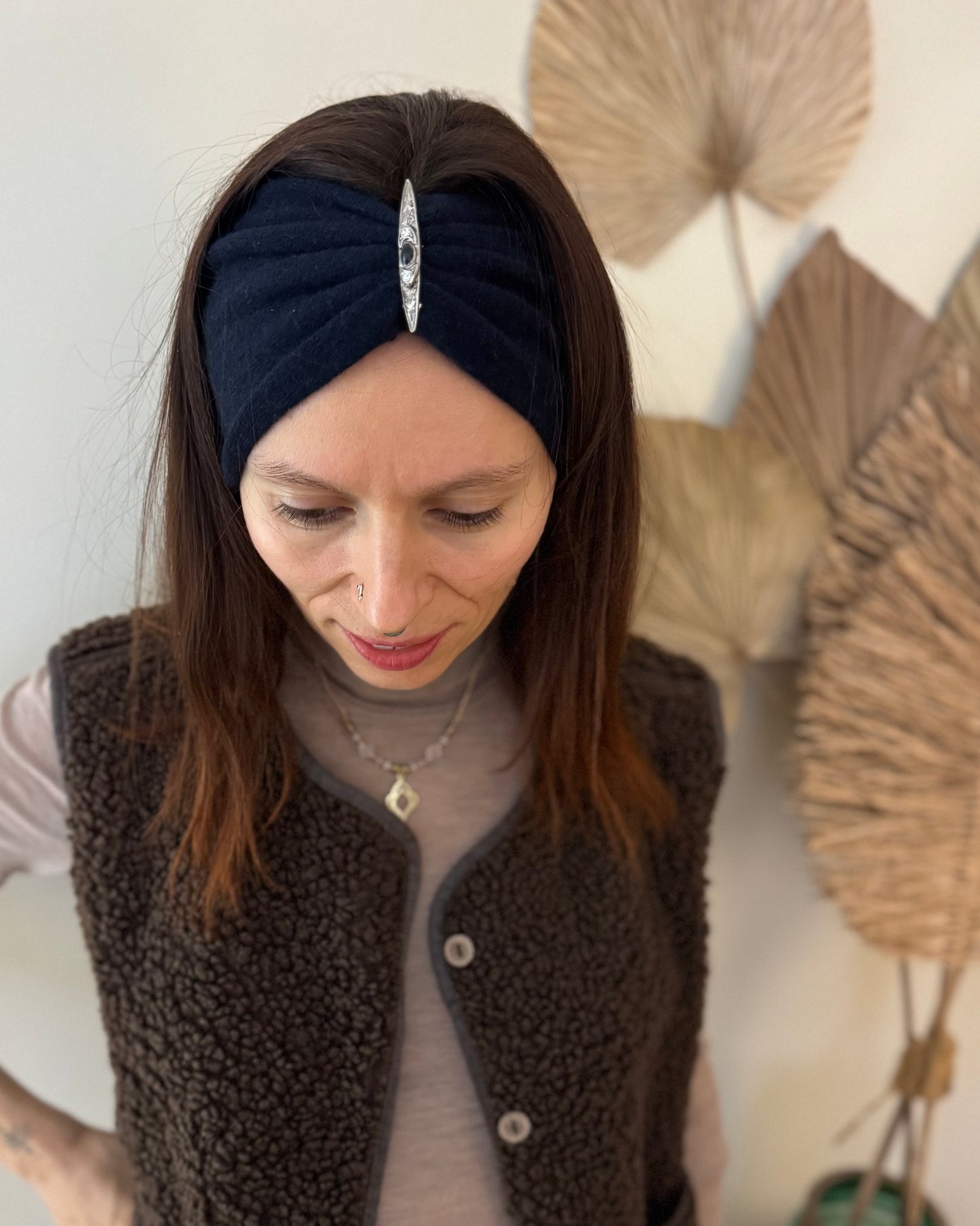 Stirnbänder aus Woll-Stoffen mit besonderen Broschen.