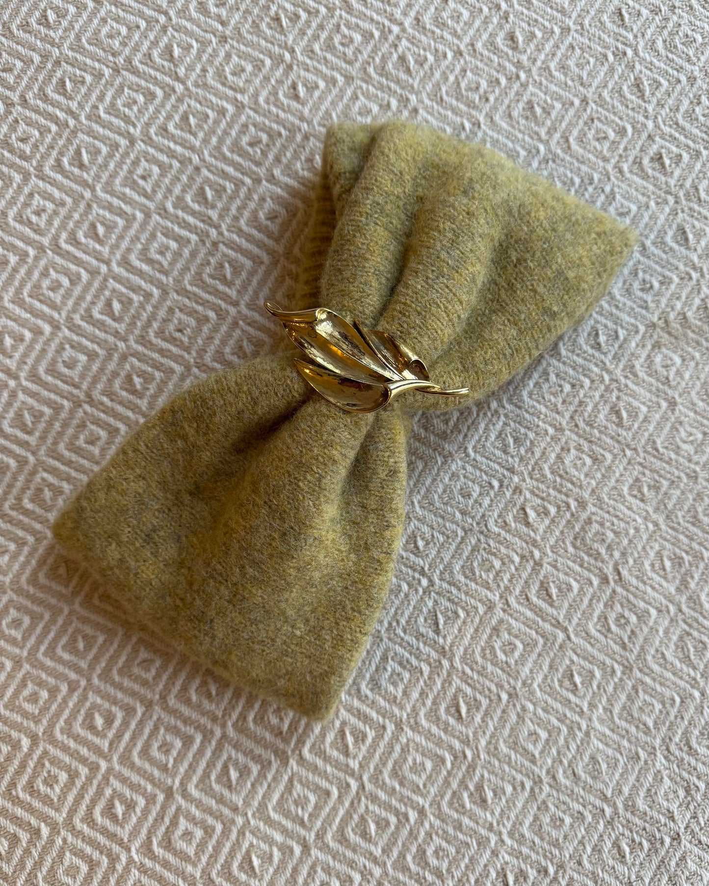 Jedes der Bänder ist ein handgefertigtes Unikat. Sie wurden von uns mit Liebe aus geretteten Woll-Pullovern handgefertigt und mit Vintage Broschen versehen, sodass für dein Kleidungsstück Ressourcen geschont werden.