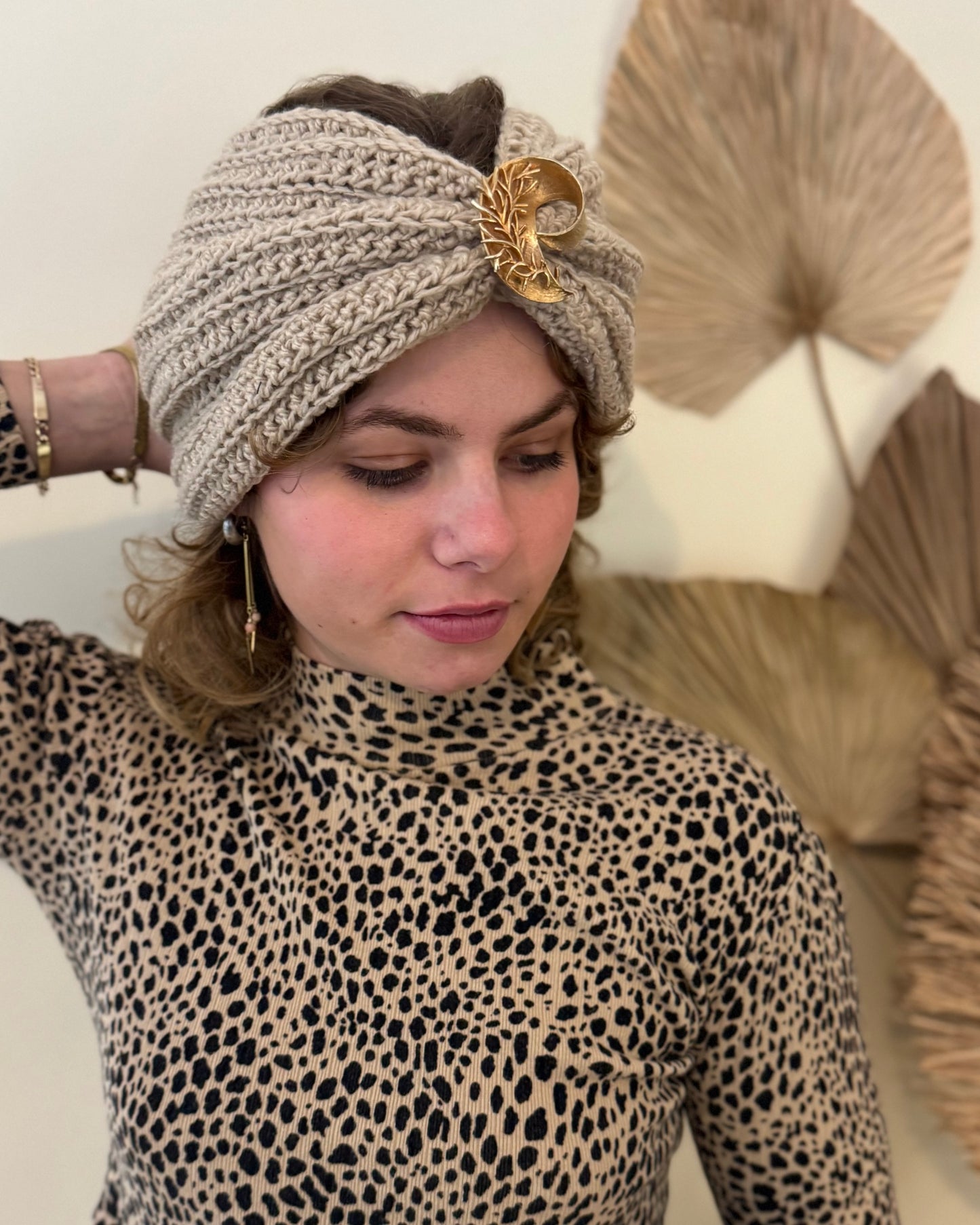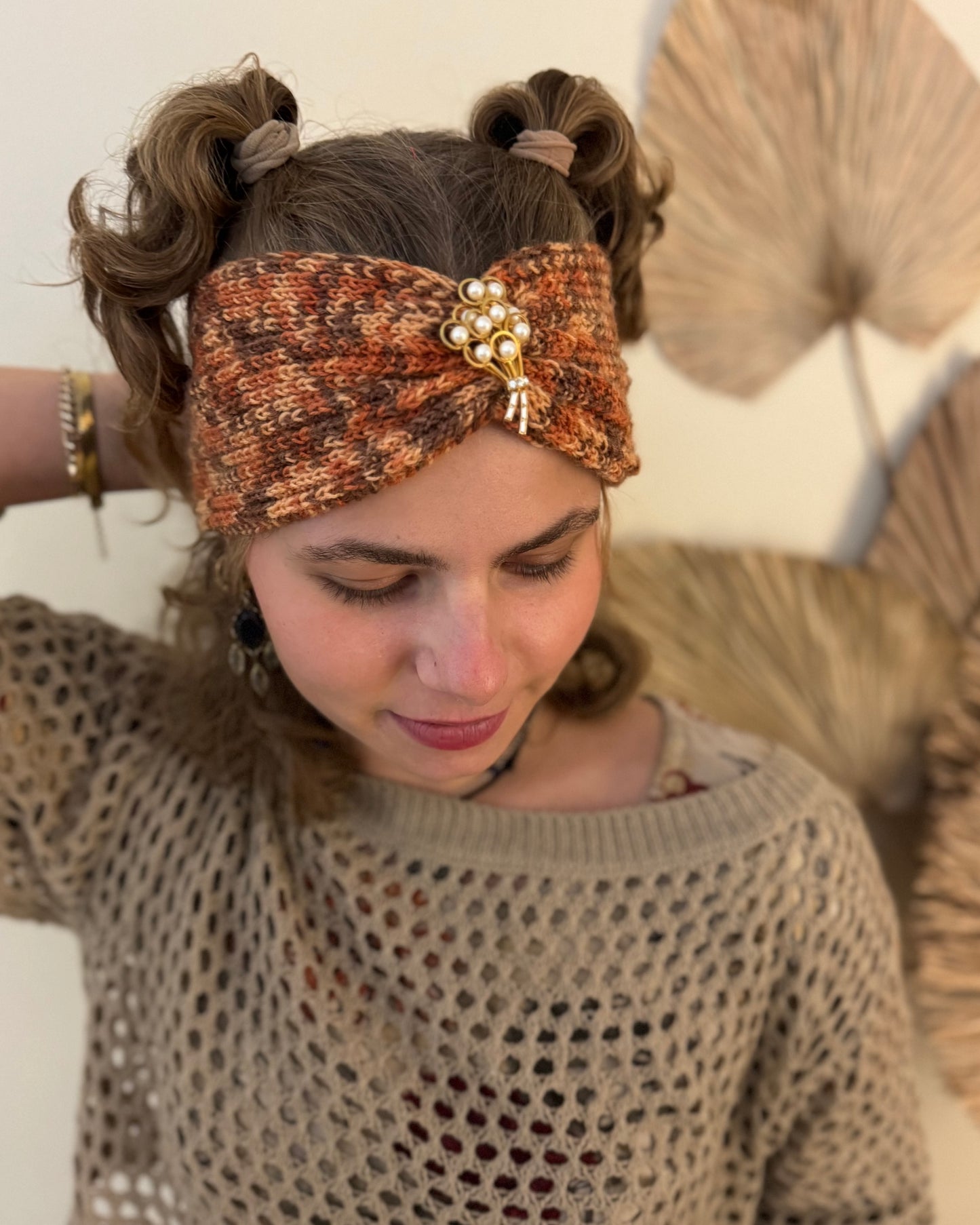 Stirnbänder mit einzigartigem Broschen-Schmuck aus verschiedenen Materialien.