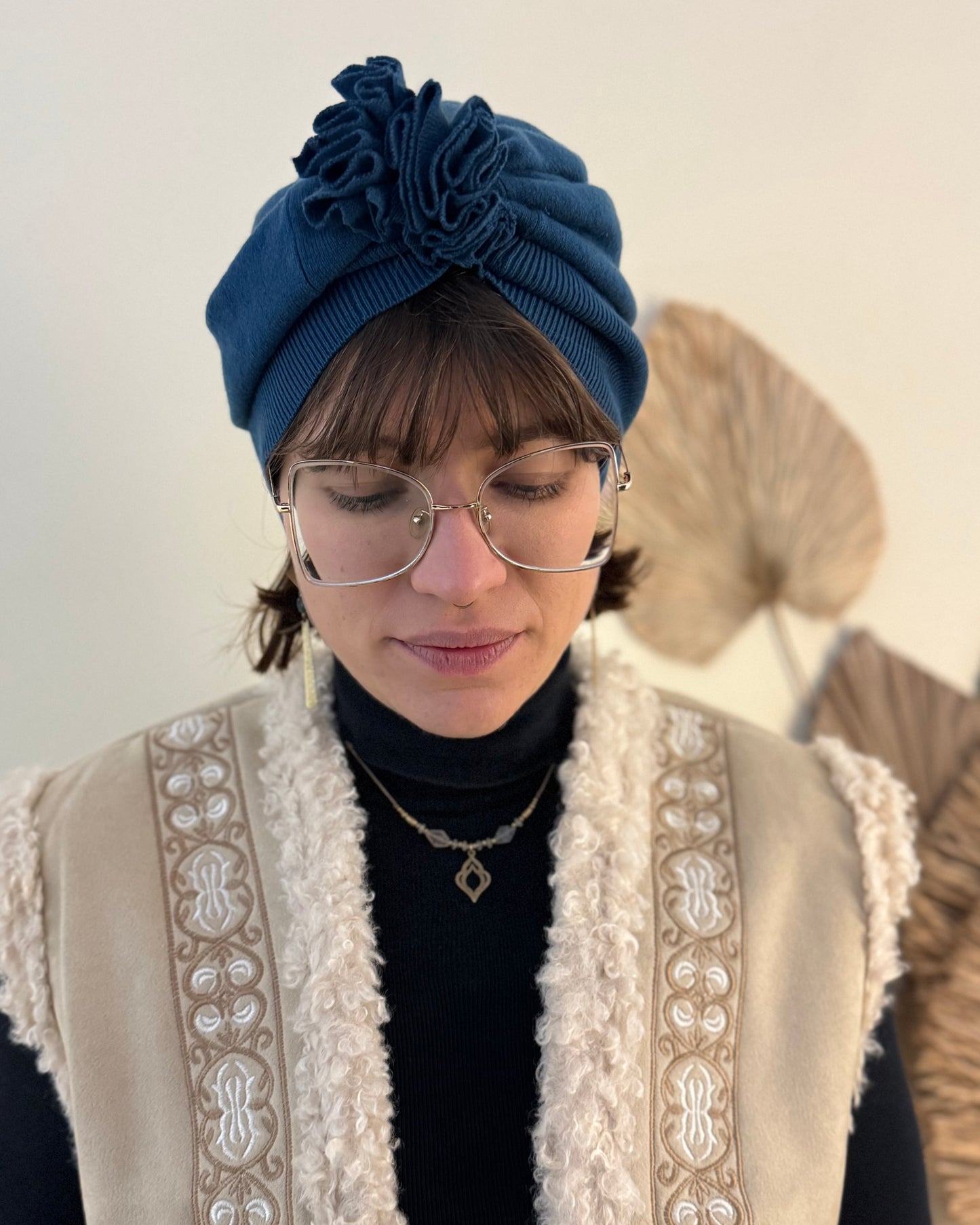 Unsere blauen Turbane sind soooo viel stylischer als jede andere Mütze.