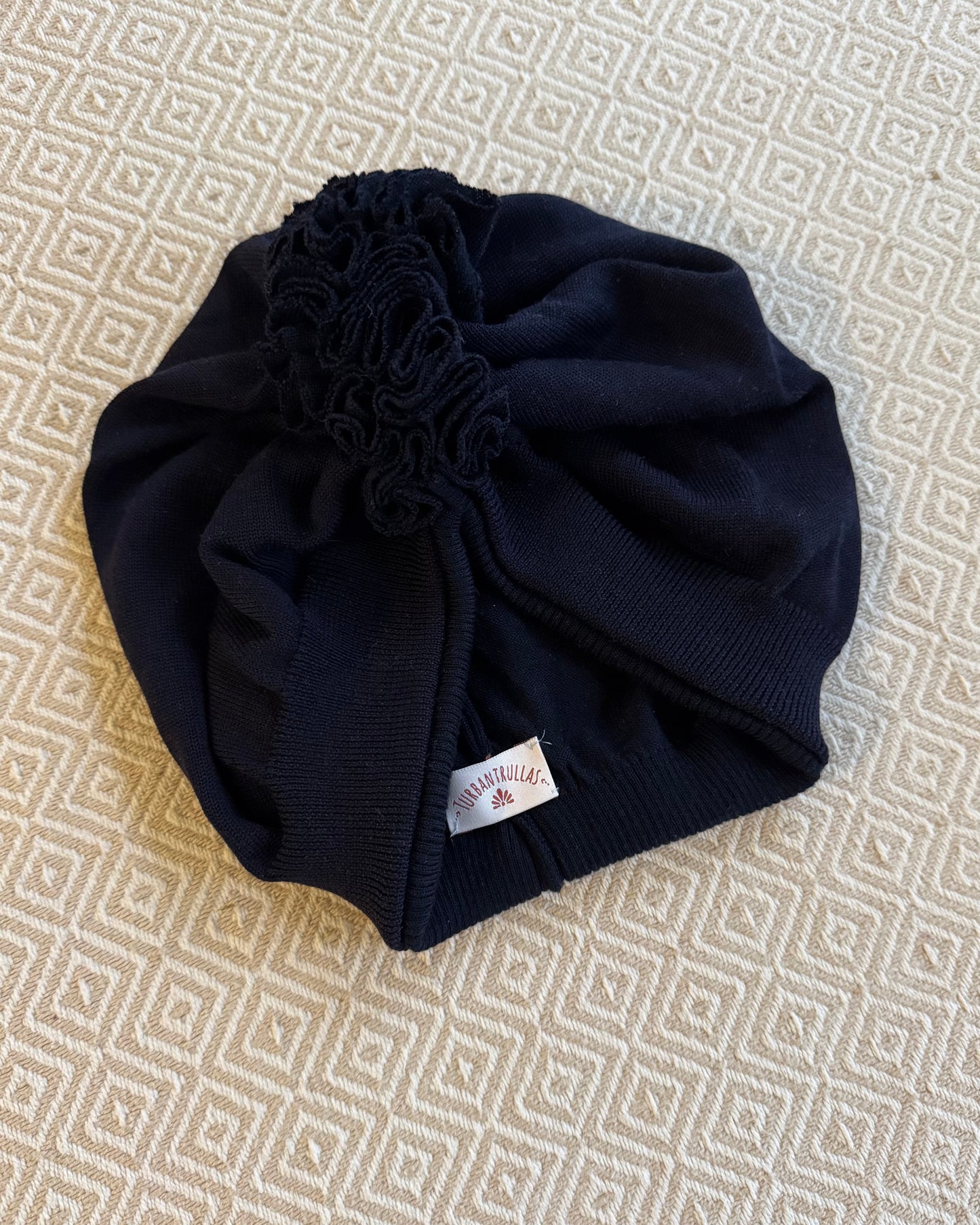 Passform: Bademützen-Style? Nein, Danke. Wir haben den Schnitt unserer Turbane so konzipiert, dass sie schön fluffig am Kopf sitzen. Durch die Raffung vorne, wirken die Turbane besonders extravagant.