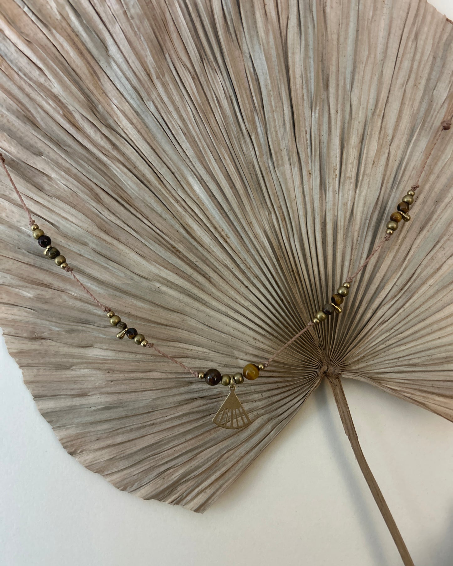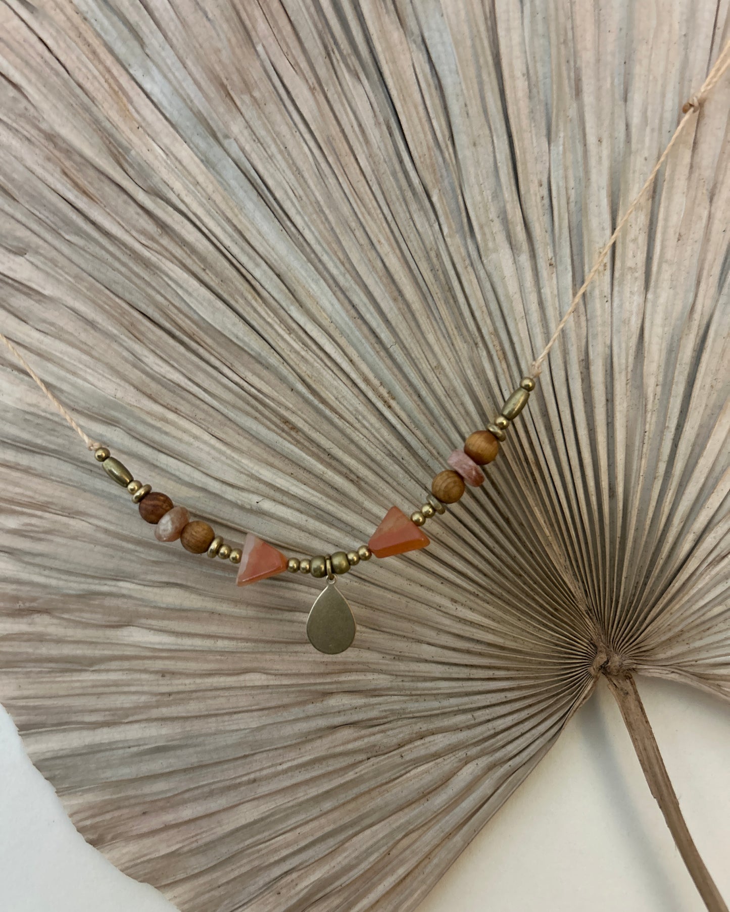 Wir verwenden recycelte Edelsteine wie Rosenquarz oder Tigeraugen, Perlmutt, Mala- und Messingperlen sowie Muscheln, Holzperlen aus Secondhand Ketten, Armbändern oder Restposten Verkäufen.
