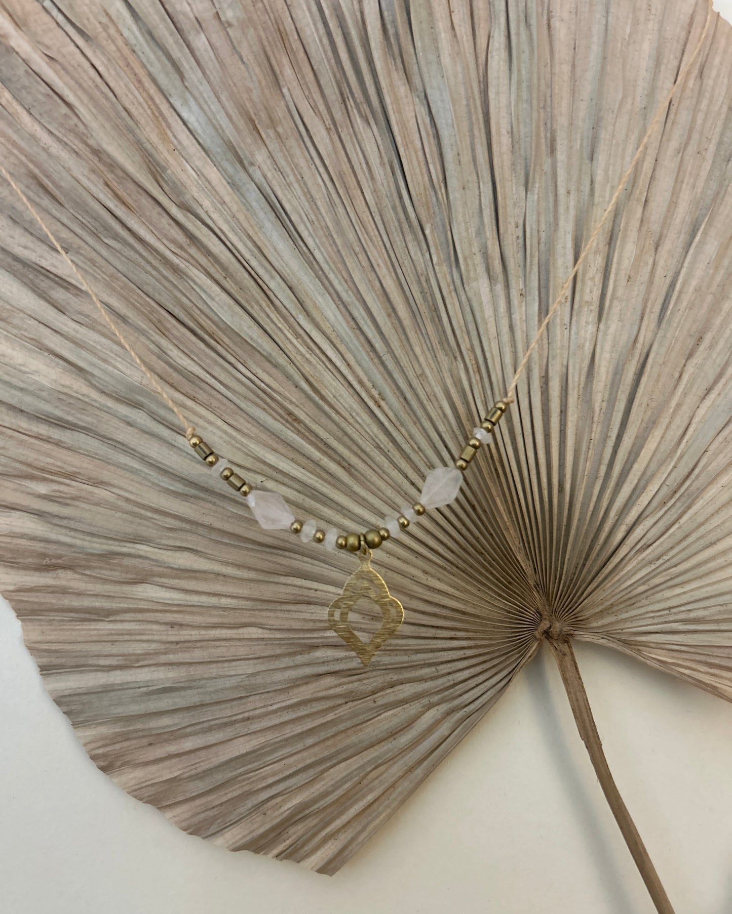 The necklace has a macrame clasp, which is adjustable in size. So you can wear your necklace both short and long.