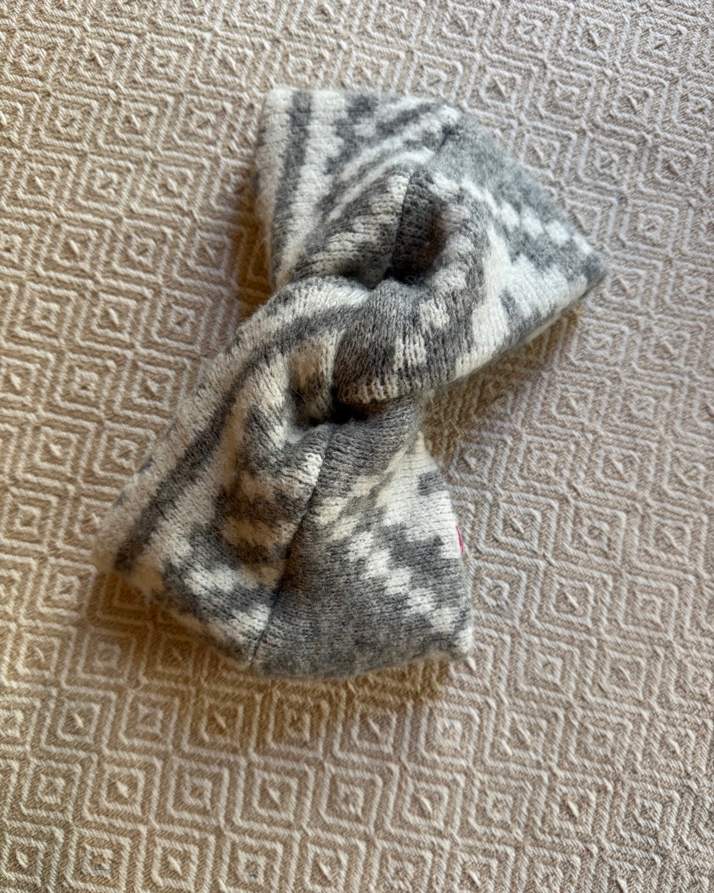 All turban knit headbands are handmade with love and 100% upcycled from old scarves.