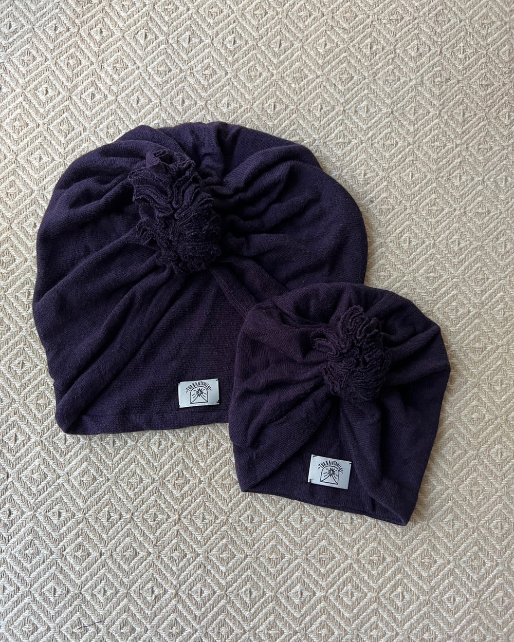 This very special set was upcycled from a dress and is a handmade unique piece. The turbans sit super nice and fluffy on the head.