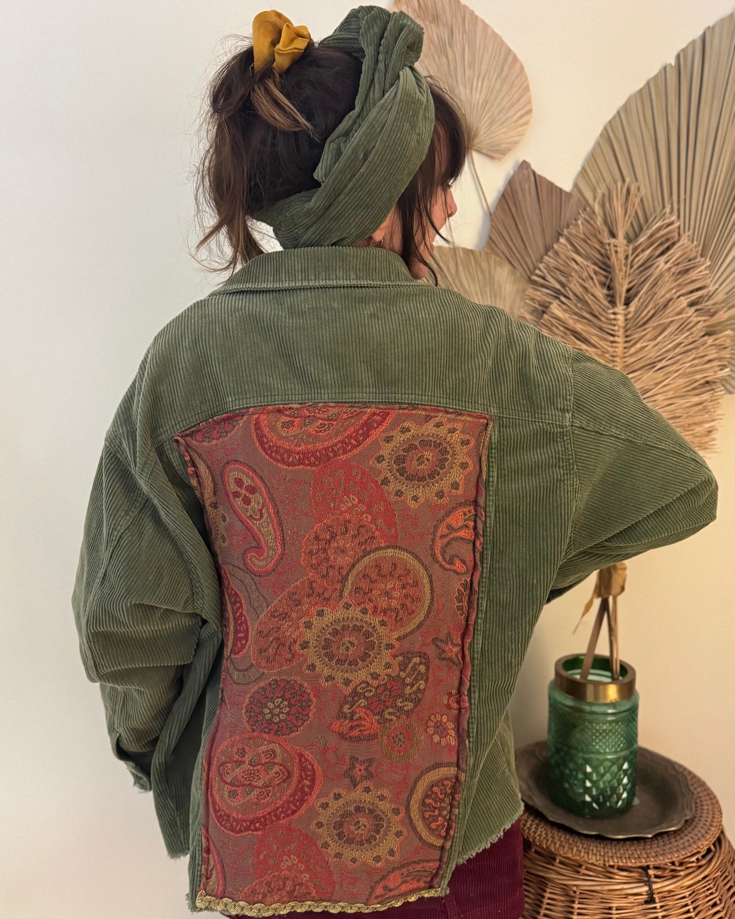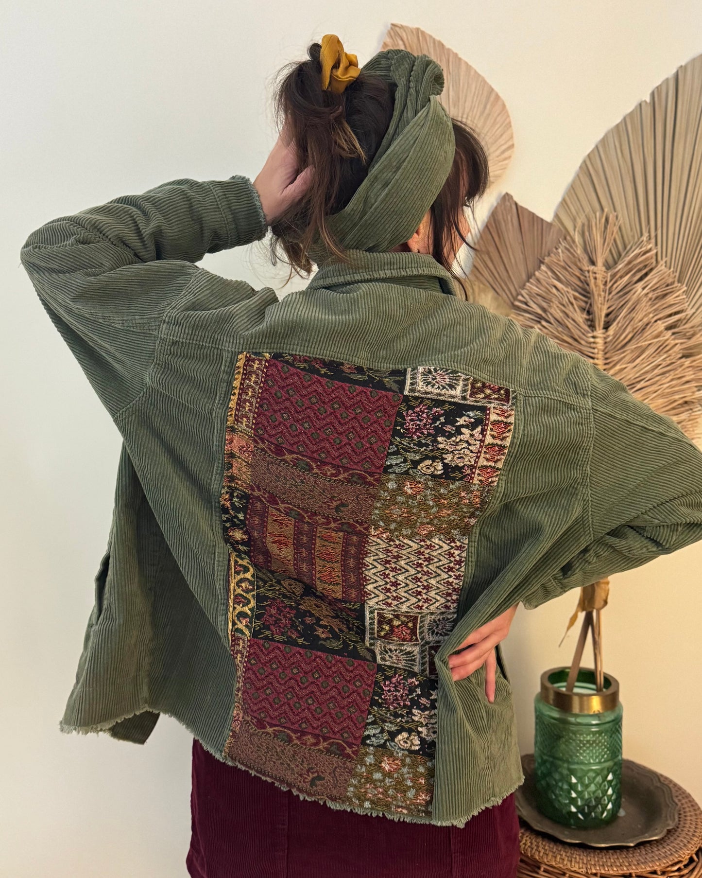 Jedes dieser Upcycling Unikate ist eine Kombination aus Secondhand Jacke/Weste und einzigartigem Stoff-Schatz.