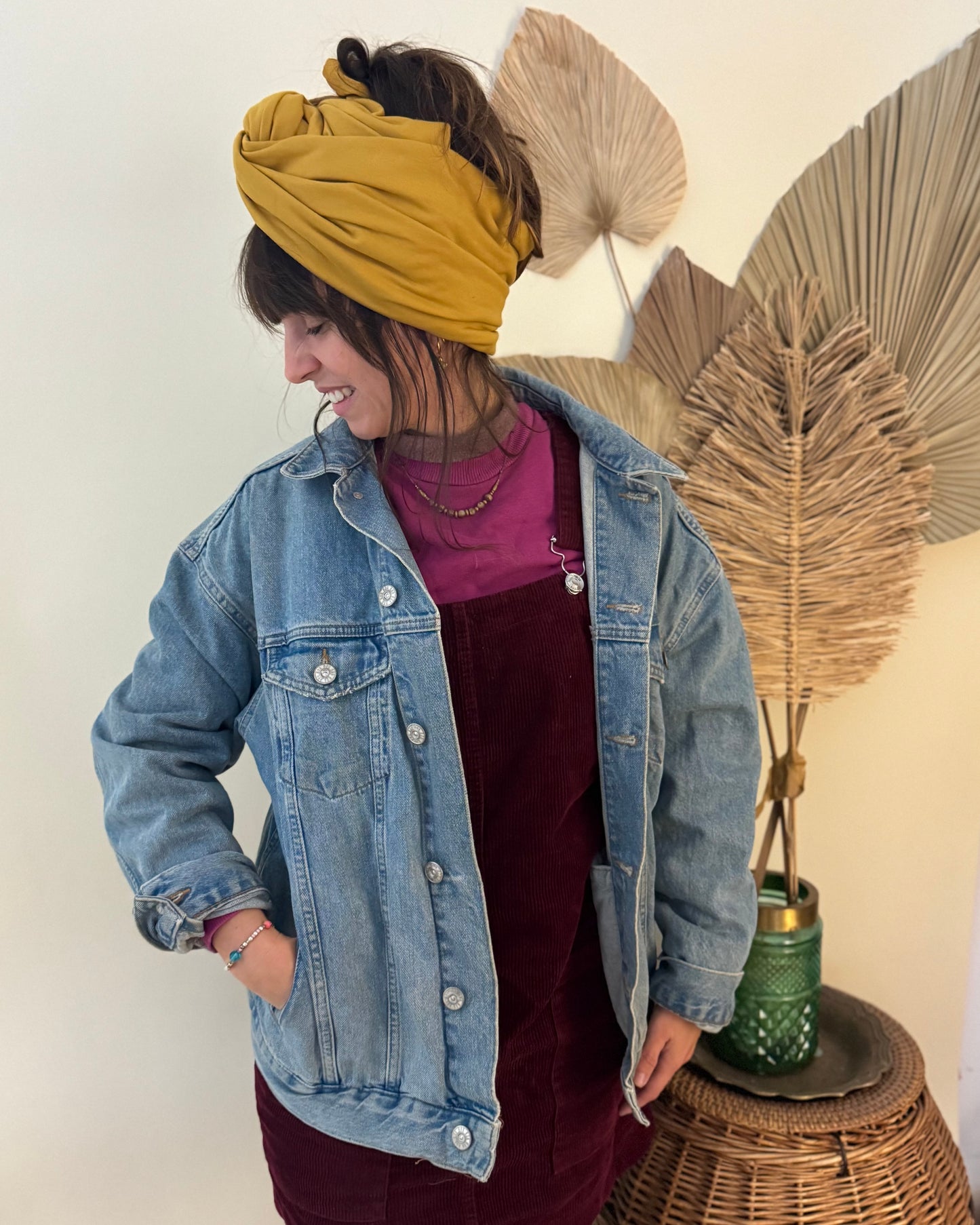 Wir fotografieren all unsere Kreationen an uns selbst. Viele Jacken lassen sich auch super Oversize tragen.