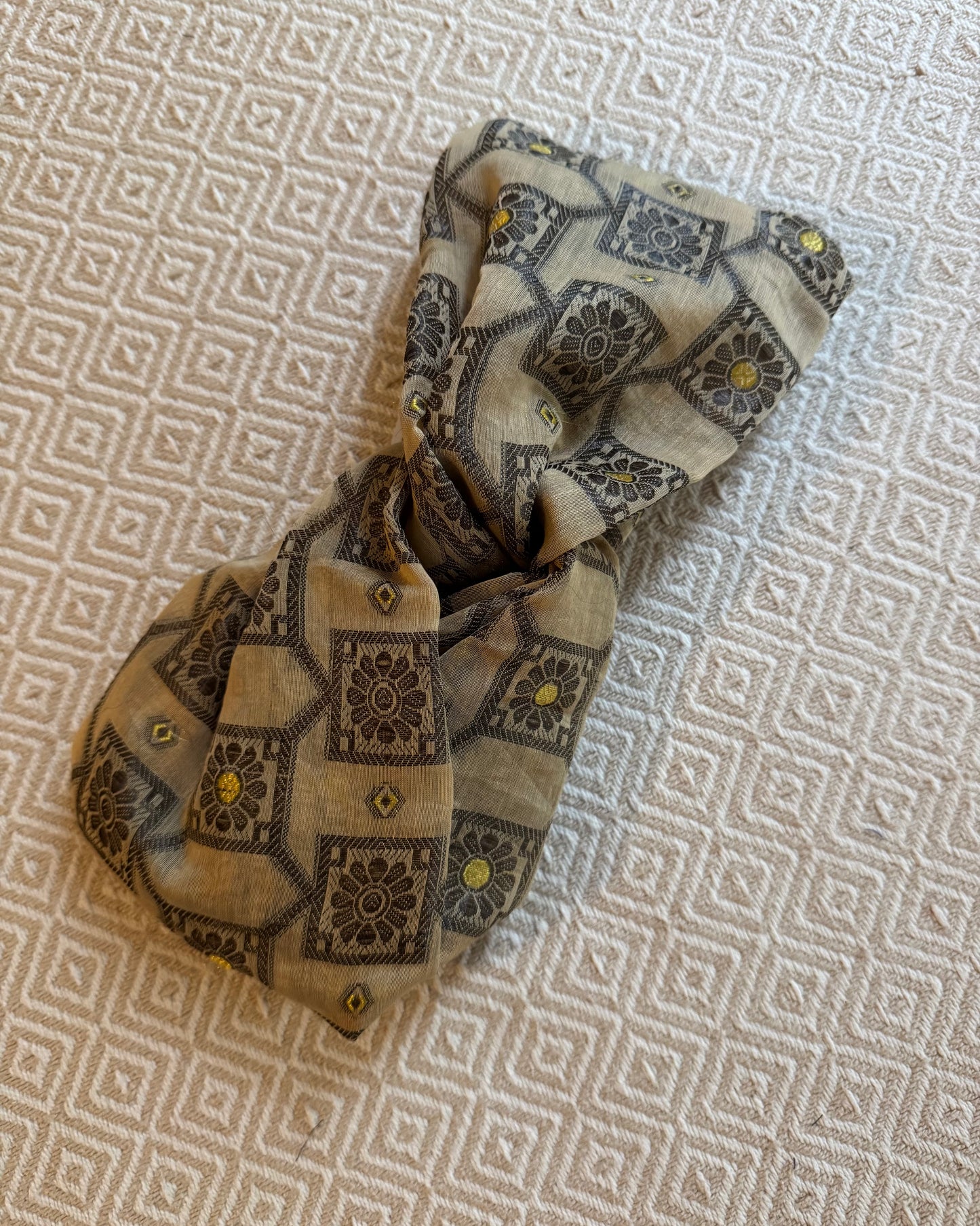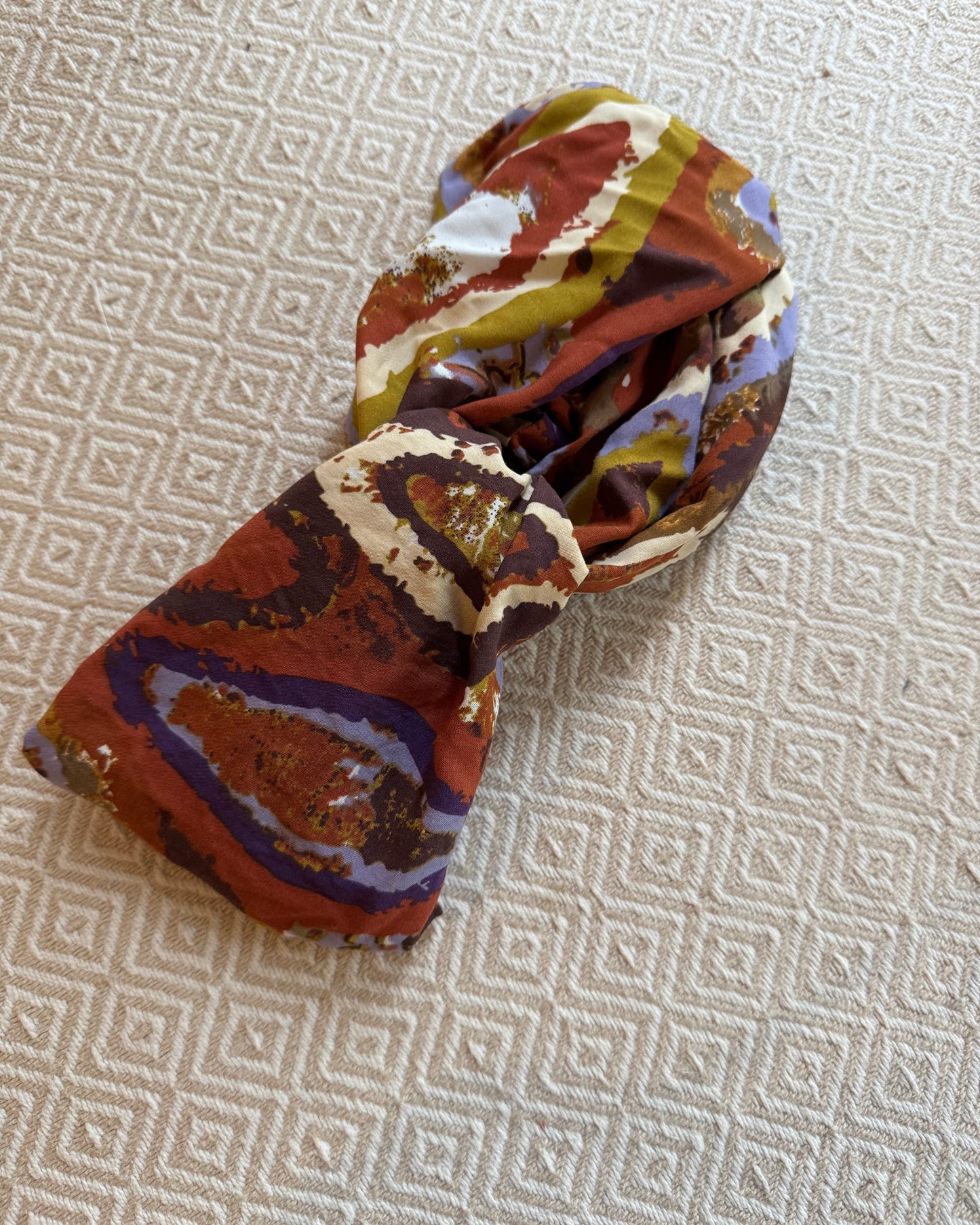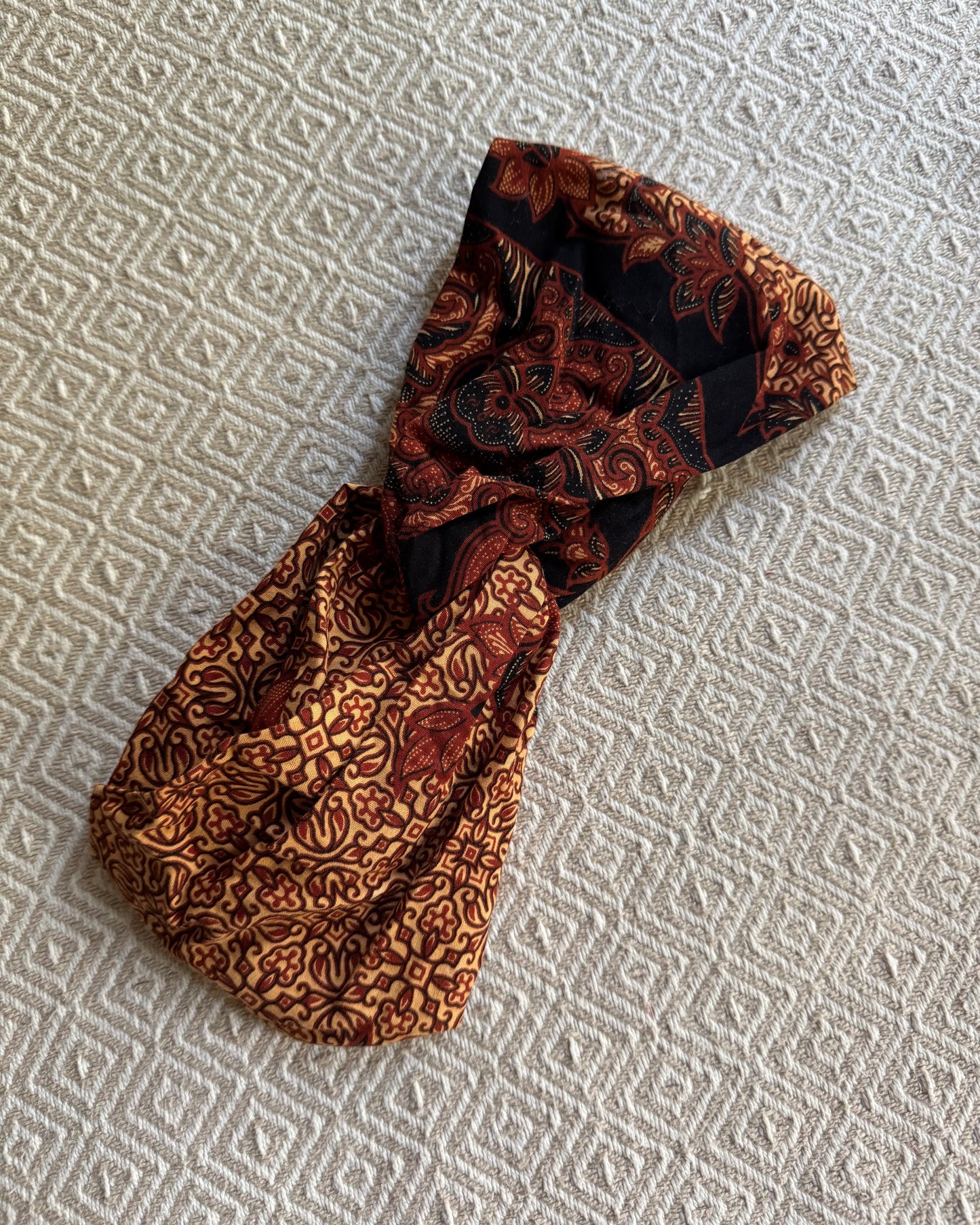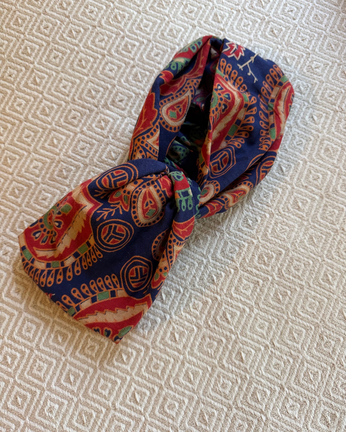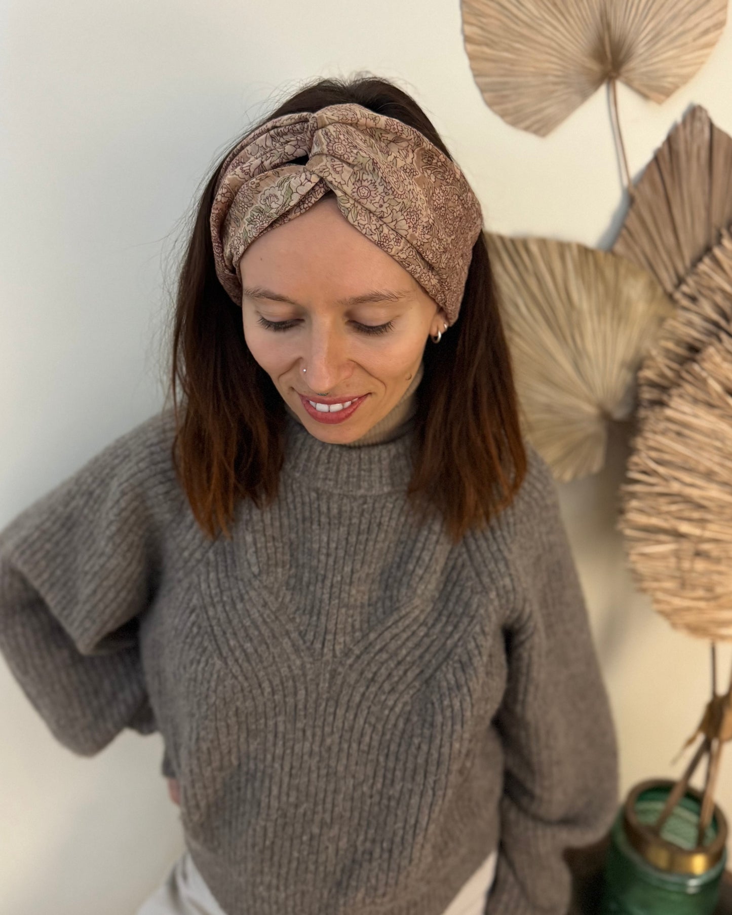 Neben den Drahttrullas bin ich ein großer Fan von den Tuchbändern. Dieses Mal habe ich mich für eine gemusterte Variante entschieden. Das Tuch war mal ein Rock, wie schön das er weiter getragen werden kann. Sehr angenehmer Stoff und wie immer super verarbeitet. Es rutscht nicht und lässt sich super tragen. Die Tuchbänder mag ich auch sehr, weil mein Fahrradhelm drüber passt und ich dann nie ohne Trulla aus dem Haus gehen muss.
