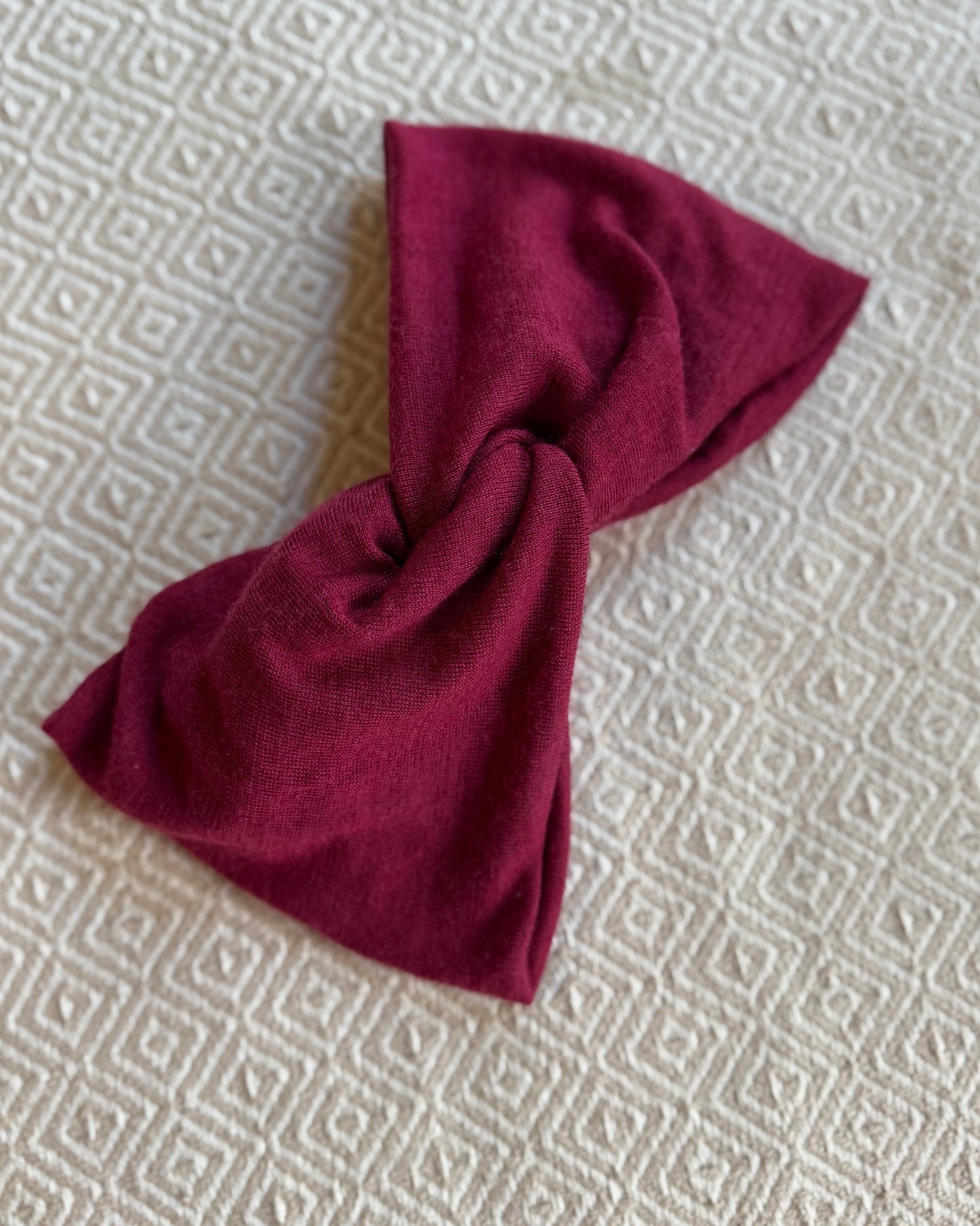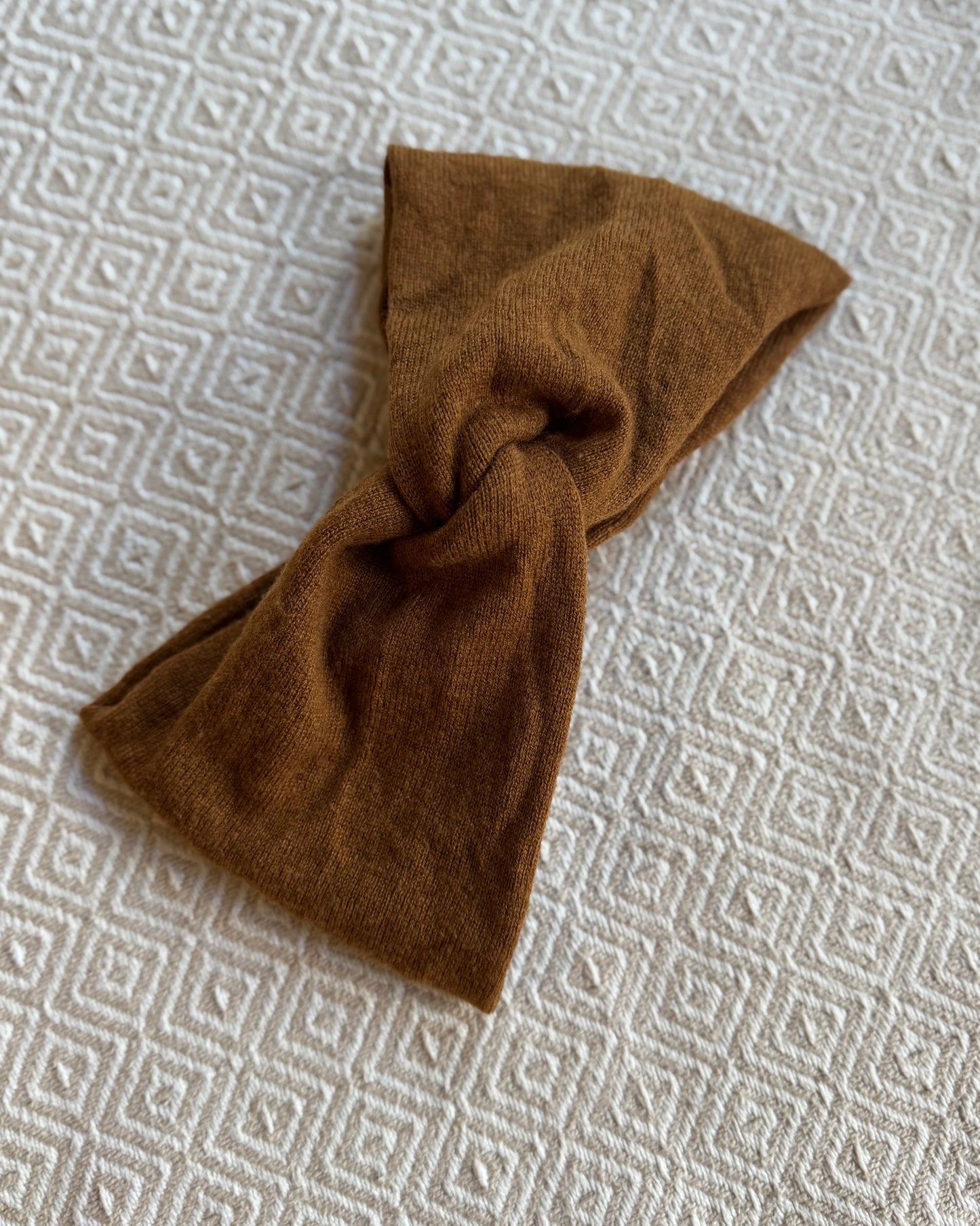 Die meisten Stirnbänder können wir aus ehemaligen Pullover-Ärmeln oder Secondhand Schals schneidern.